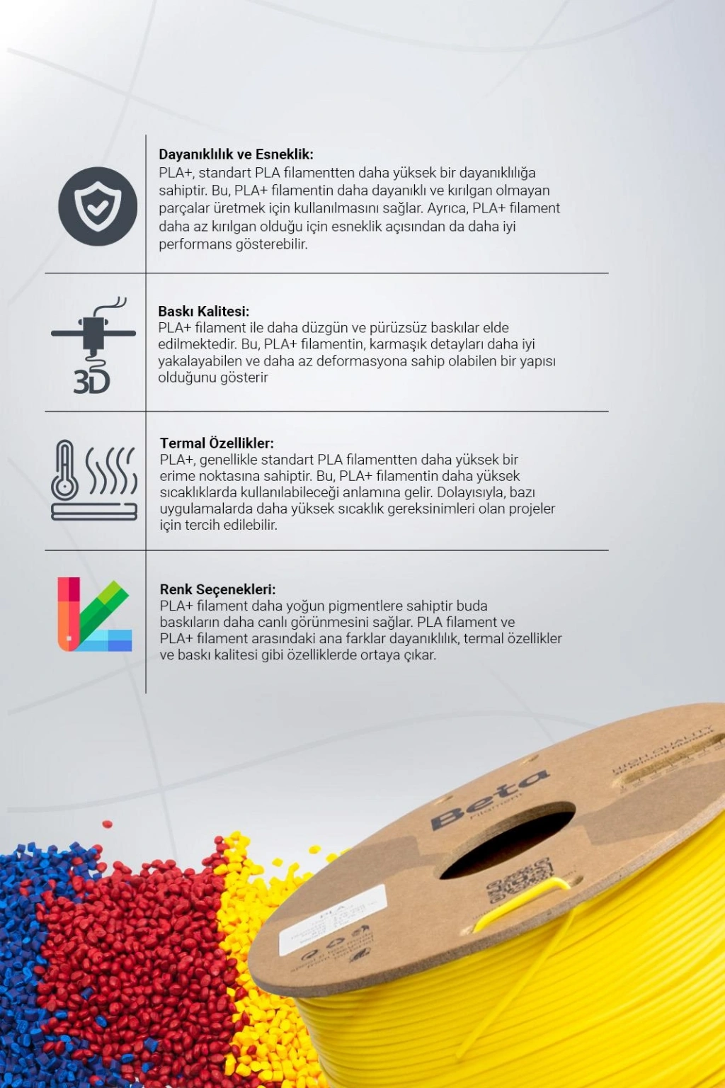 Güçlendirilmiş ve Yüksek Kaliteli Baskılar İçin Beta PLA+ Filament