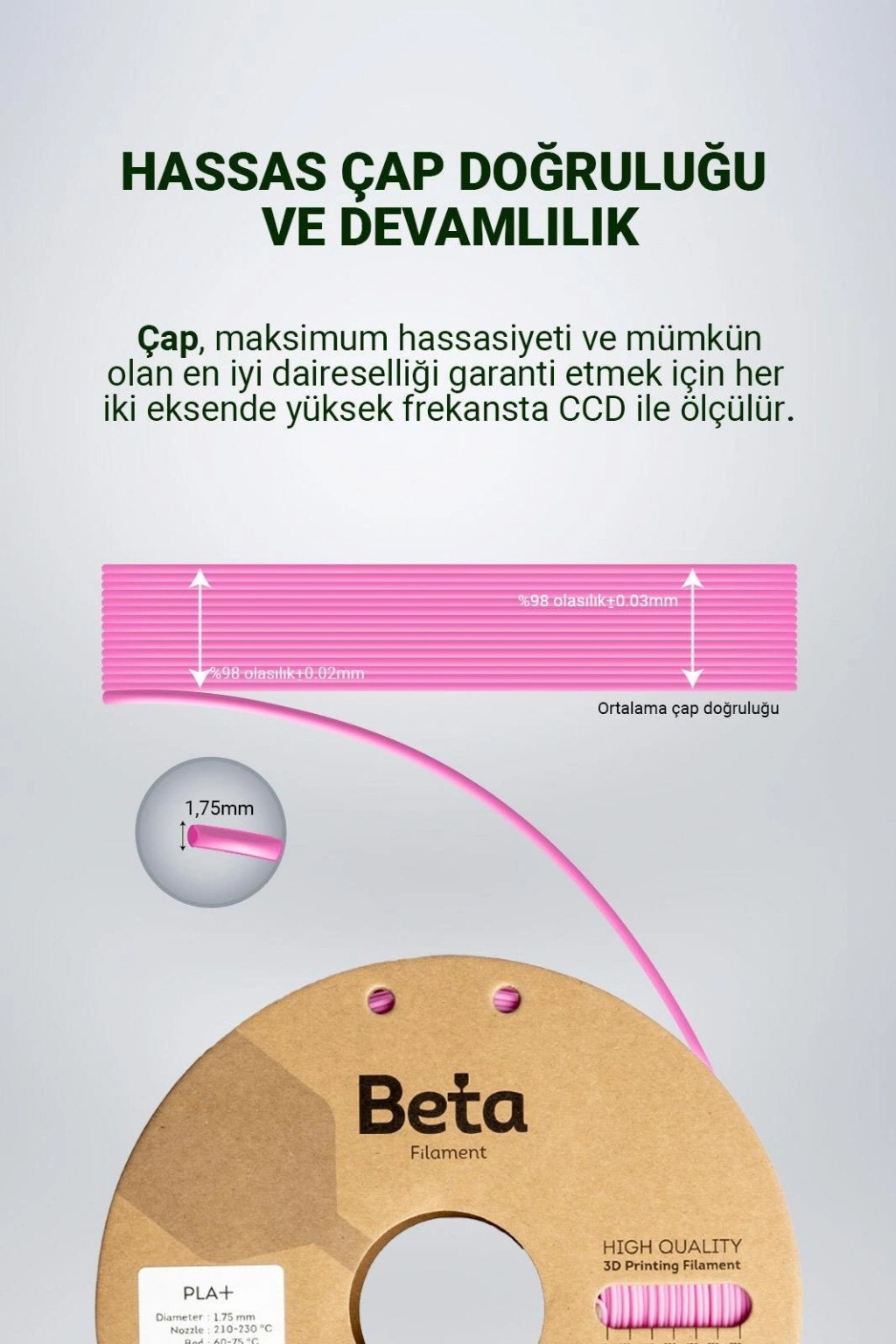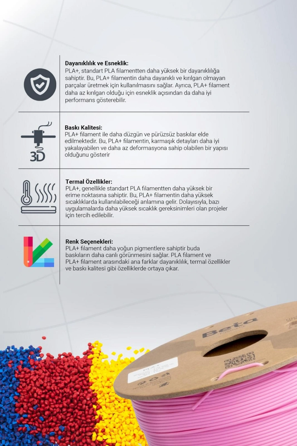 Güçlendirilmiş ve Yüksek Kaliteli Baskılar İçin Beta PLA+ Filament