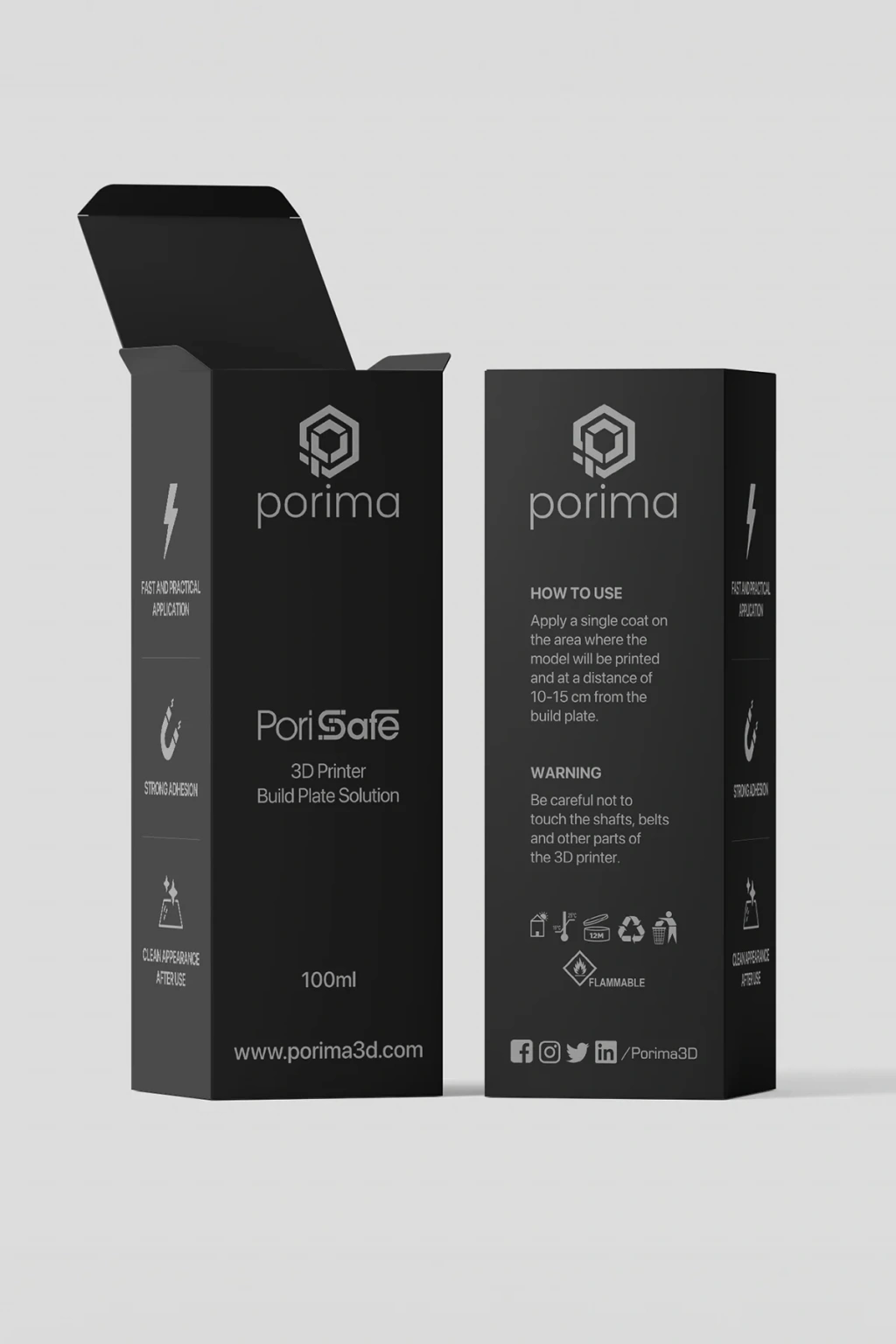 Porima PoriSafe Tabla Yapıştırıcı Sprey, 3D yazıcılarda baskı kalitesini artırmak ve ilk katman yapışma sorunlarını ortadan kaldırmak amacıyla özel olarak formüle edilmiş bir üründür. PLA, PETG, ABS ve ASA gibi yaygın filament türleriyle yüksek uyumluluk sağlar. Sprey formundaki yapısı sayesinde uygulaması son derece kolaydır ve tabla yüzeyine eşit şekilde dağılır.